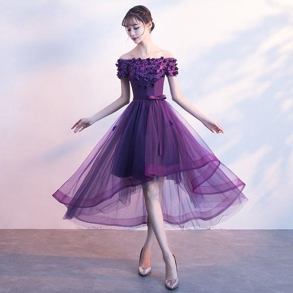 カラードレス 演奏会 ミニ丈 結婚式 花嫁 オフショルダー パープル 半袖 Aライン お呼ばれ 二次会 パーティードレス 編み上げ ウェディングドレス ウエディング Y アトランティス 通販 Yahoo ショッピング
